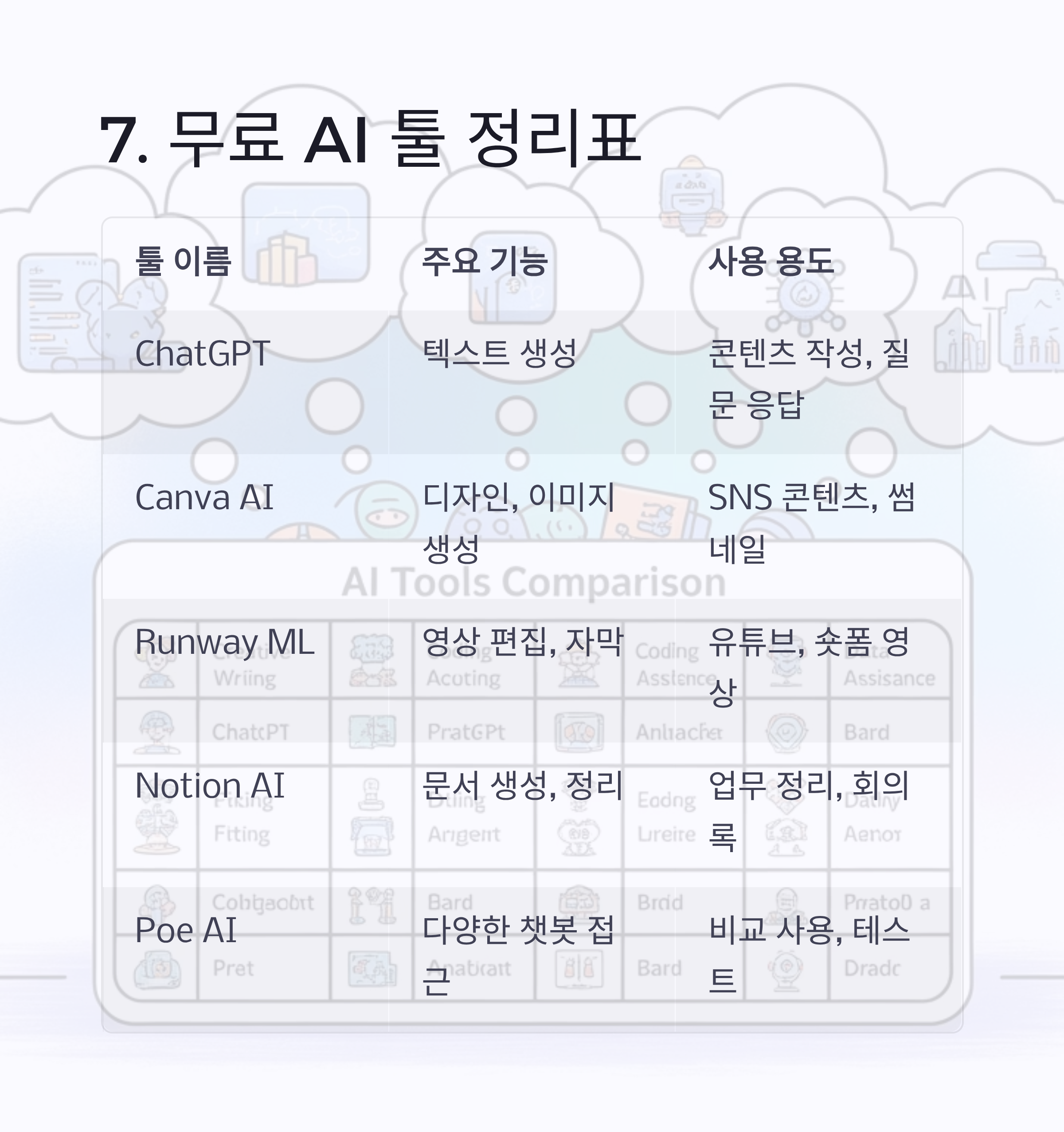 7. 무료 AI 툴 정리표