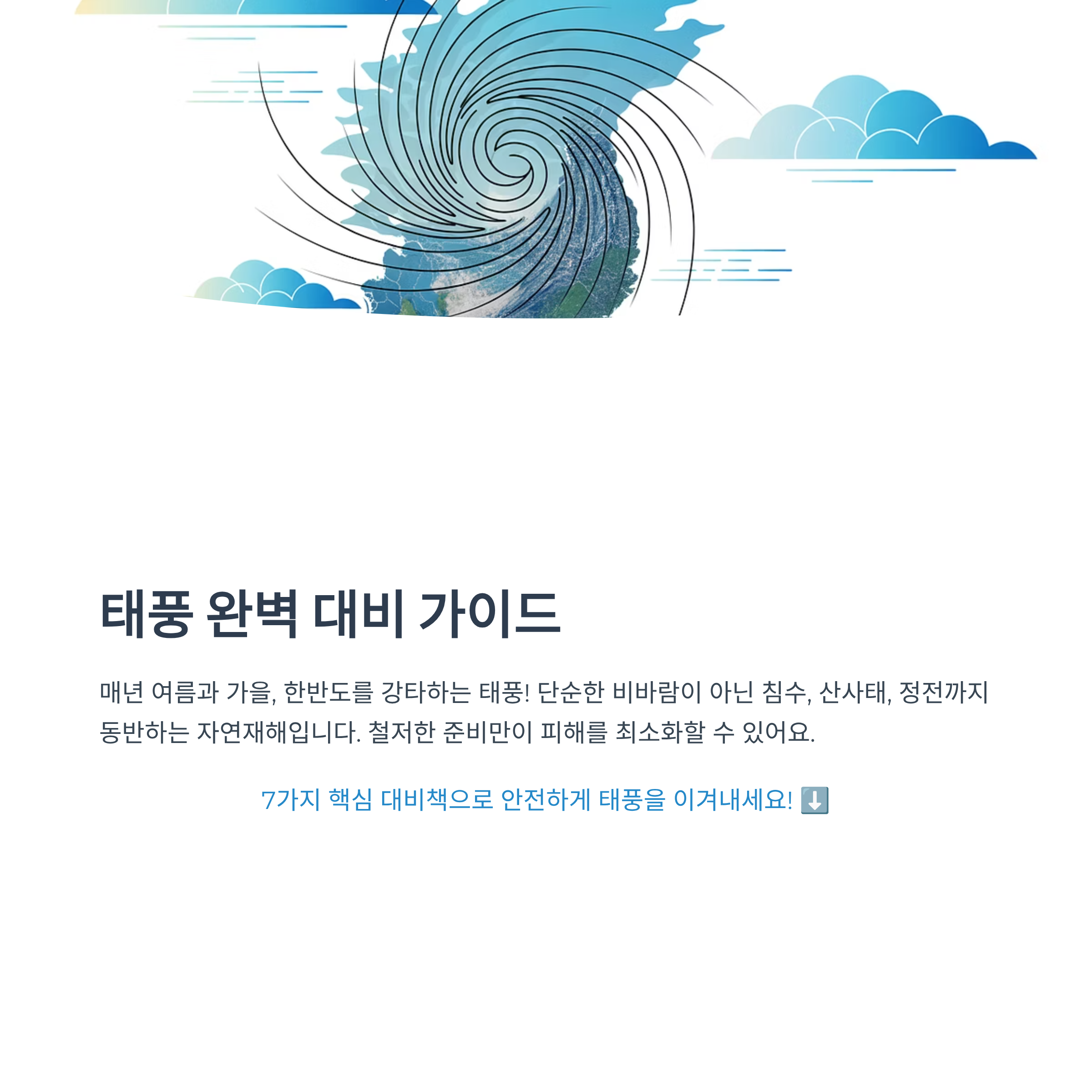 매년 여름과 가을, 한반도는 여러 차례 태풍의 영향을 받습니다. 태풍은 단순히 강한 비바람만이 아니라 침수, 산사태, 정전, 교통 마비 같은 2차 피해를 동반하기 때문에 사전에 철저히 준비하지 않으면 큰 피해로 이어질 수 있습니다. 이번 글에서는 태풍 대비 유의사항부터 차량 침수 예방과 대처법, 그리고 태풍이 지나간 후 점검해야 할 사항까지 종합적으로 정리했습니다.