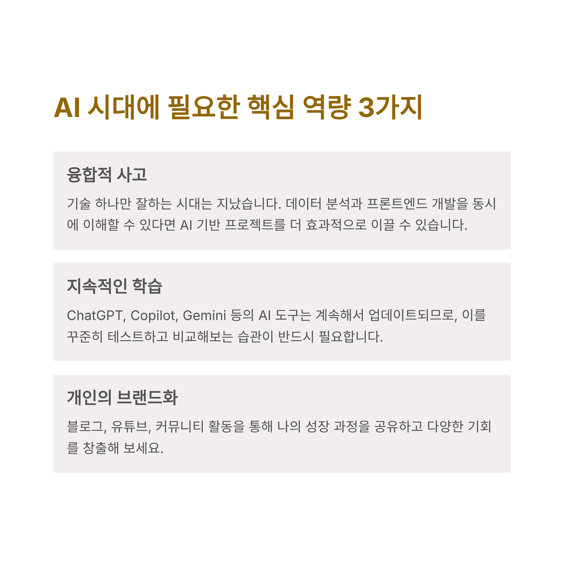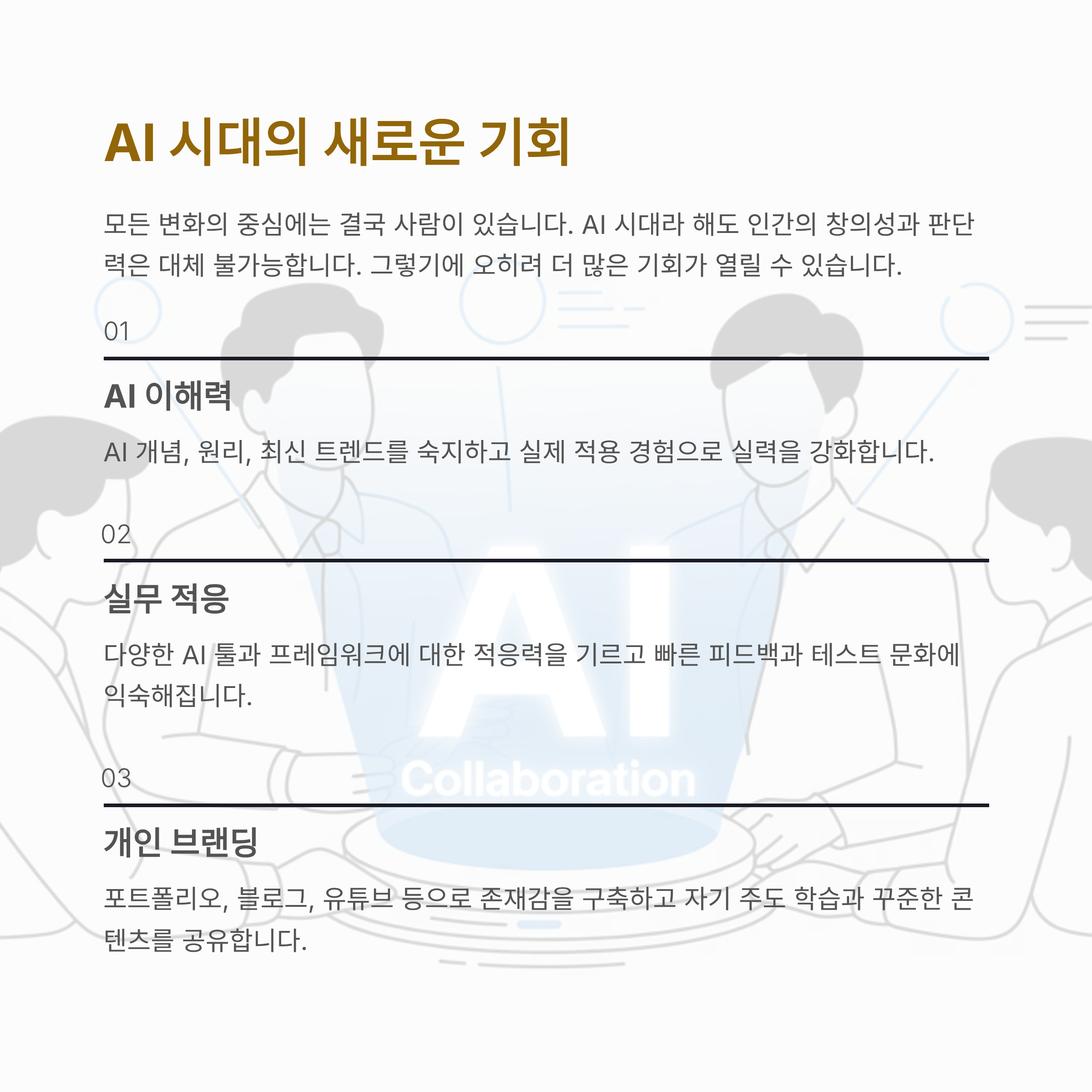 | AI 이해력 | 실무 적응 | 개인 브랜딩 |
