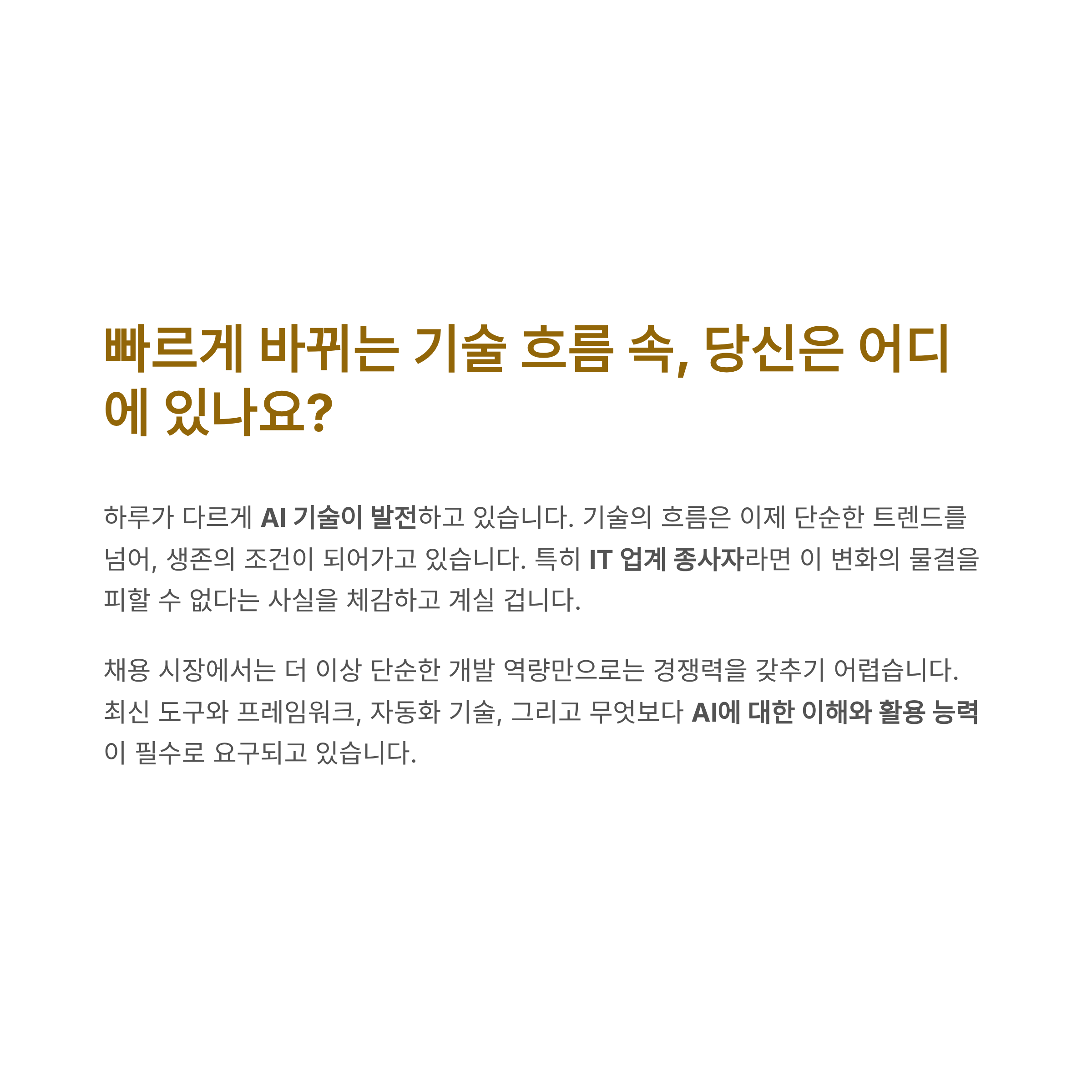 빠르게 바뀌는 기술 흐름 속, 당신은 어디에 있나요?